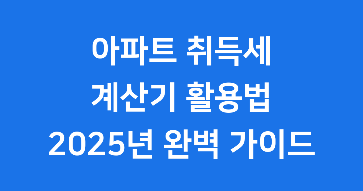 아파트 취득세 계산기 똑똑하게 활용하는 2025년 가이드