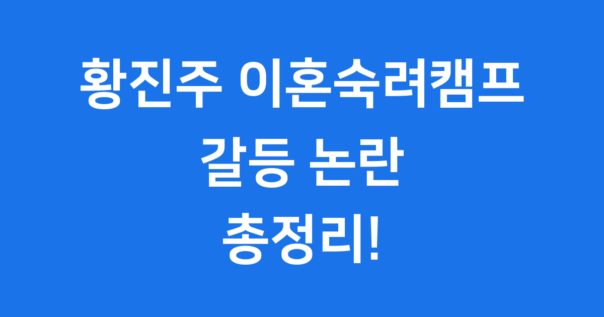 안녕하세요! 오늘은 JTBC 예능 프로그램 '이혼숙려캠프'에서 많은 분들의 관심을 받았던 황진주, 조승환 부부의 이야기를 해보려고 해요. 저도 방송을 보면서 많은 생각을 하게 되었는데요, 부부들이 서로의 갈등을 전문가와 함께 풀어가는 모습이 참 인상 깊었어요. 😊